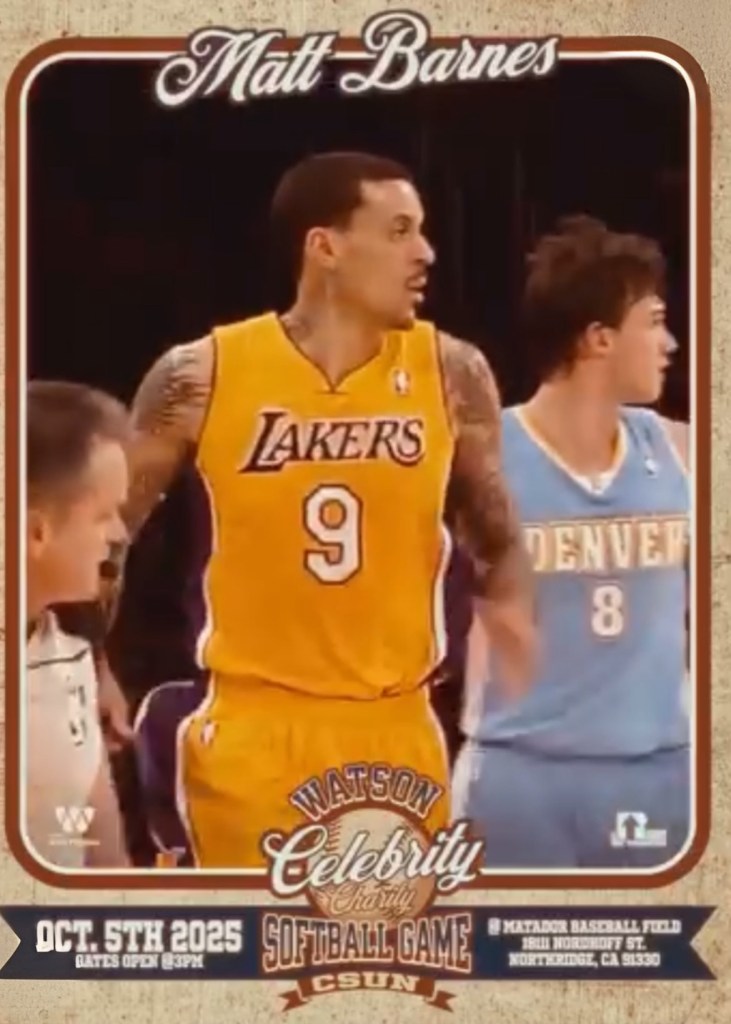 The 5th Annual Team Watson Charity Softball Game will take place on Sunday, October 5, 2025 at the Cal State University Northridge Baseball Field